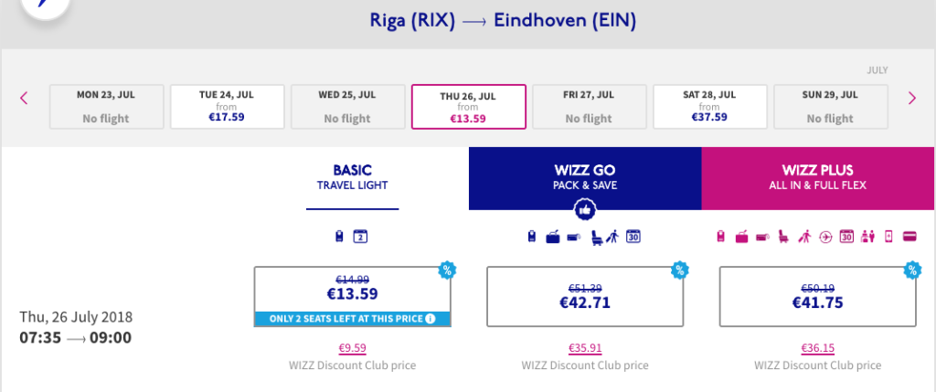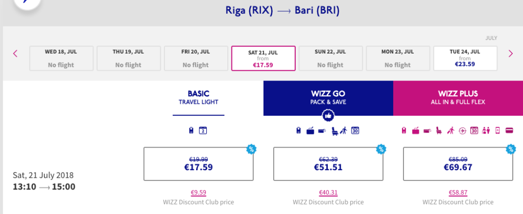 Wizzairi sihtkohad Riiast:Bari , Reykjavik, London, Barcelona, Bergen, Doncaster/Sheffield, Dortmund, Eindhoven, Kutaisi, Sandefjord (Oslo), Tel AvivWizzairi sihtkohad Tallinnast:Kiiev, London (Luton)