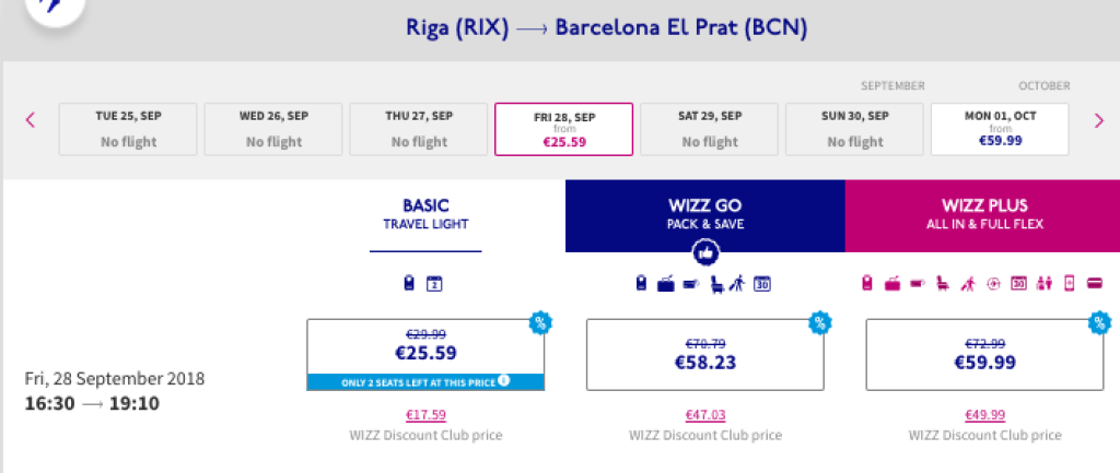 Toome välja näidiskuupäevad kus kõikidel piletitel on hinnad alla 40€. Momondo.ee näitab küll hinda 40+€ aga minnes edasi Wizzairi kodulehele muutub hind soodsamaks.
