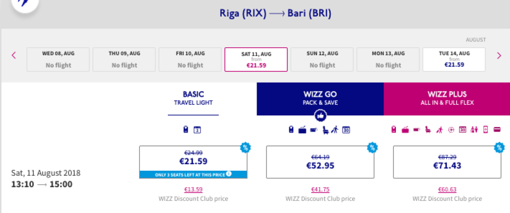 Toome välja näidiskuupäevad kus kõikidel piletitel on hinnad alla 50€. Momondo.ee näitab küll hinda 50+€ aga minnes edasi Wizzairi kodulehele muutub hind soodsamaks.