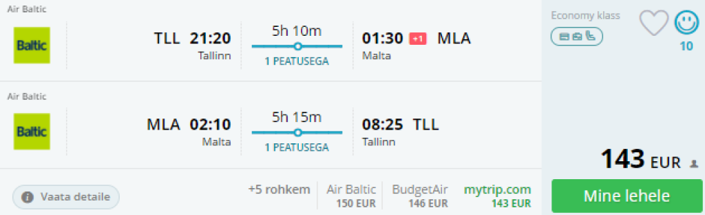 airBalticul algas täna pakkumine kevadistele lendudele. Tavapärasest soodsamaid lennupileteid võid leida vahemikus **01.03-15.06** ning soodsaid pileteid saad broneerida kuni 31.01. Soodsate piletite ülesleidmiseks mine [airBalticu kampaanialehele](http://tidd.ly/c7b0f8df) või otsi sobivaid lennupileteid läbi Momondo.ee.Järgnevalt mõned soodsad soodsad leiud pakkumiste seast:Tallinn- Malta- Tallinn al 143€