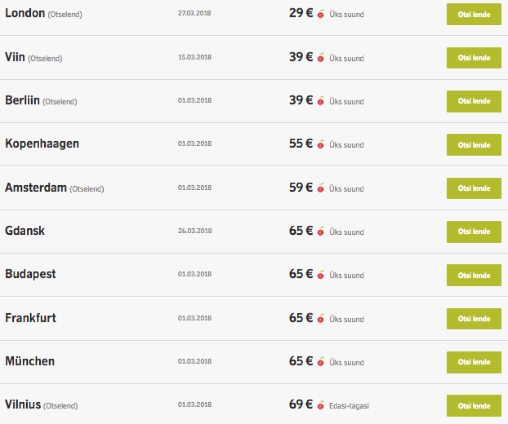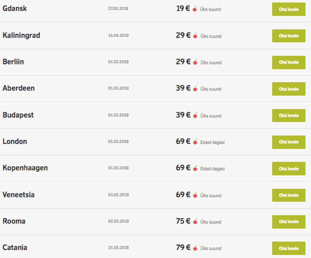 Mõningad näited piletihindadest Tallinnast: