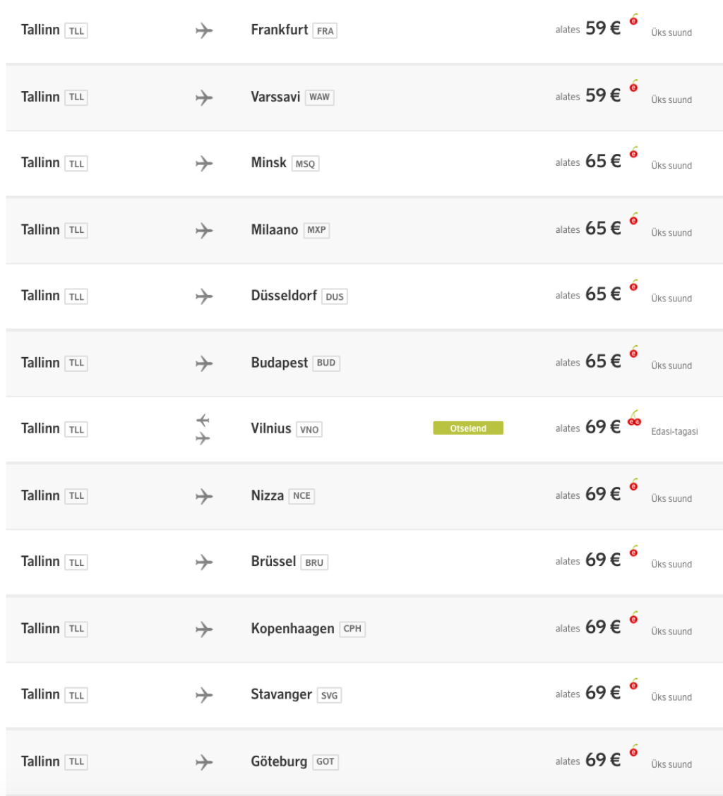 NB! Hea hinnaga lennupileteid leiab ka suveks ning ka kevadiseks ja sügiseseks vaheajaks!