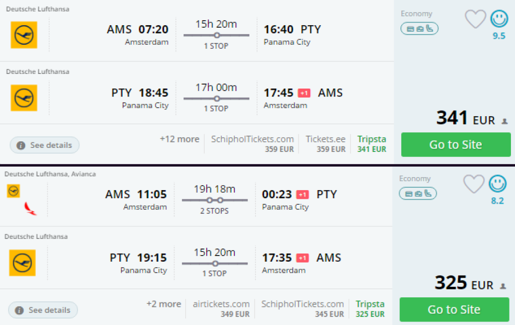 Hetkel on saada väga hea hinnaga lennupiletid Amsterdamist Panama Citysse. Saadaval on ohtralt lennukuupäevi jaanuarist aprillini. Lennud ühe või kahe ümberistumisega. Soodsad (al 325€) lennupileteid leiad aadressil momondo.com või