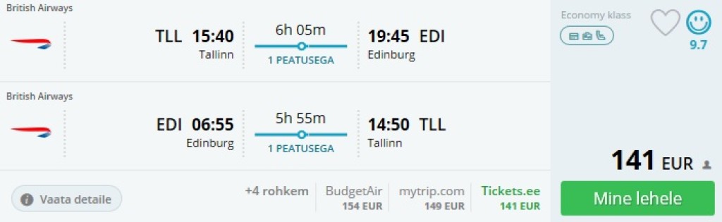 British Airways pakub praegu häid hindu mitmetesse linnadesse Suurbritannias. Hinnad algavad 60 eurost Londoni puhul, Manchesteri, Glasgow’sse ja Edinburghi 130-140 euro kandis. Pileteid on saada lendudele 2018. aasta jaanuarist märtsini. Talvises lennuplaanis on Tallinnast Londonisse 2 lendu nädalas, esmaspäeval ja reedel.