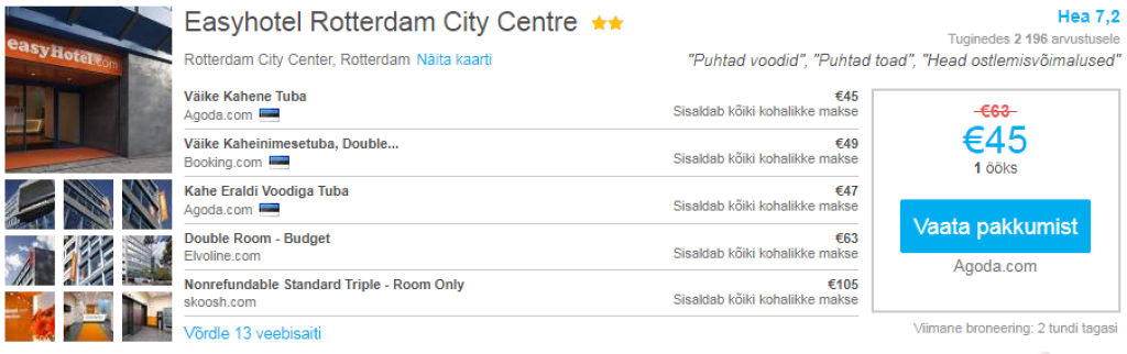 Kõik need hotellipakkumised leidsime üles läbi hinnavõrdluslehe HotelsCombined.ee