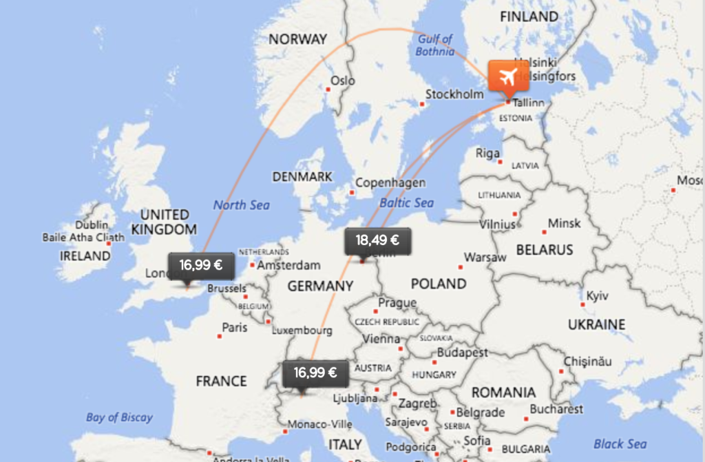 Lennupiletid Tallinnast on saadaval hinnaga alates 16.99€
