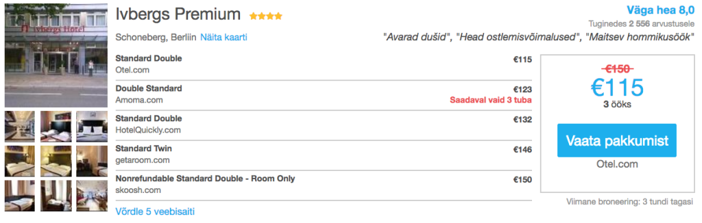 Leidub ka ohtralt teisi soodsaid variante. Otsi öömaja Berliinis endale sobivatel kuupäevadel läbi HotelsCombined.ee otsingumootori