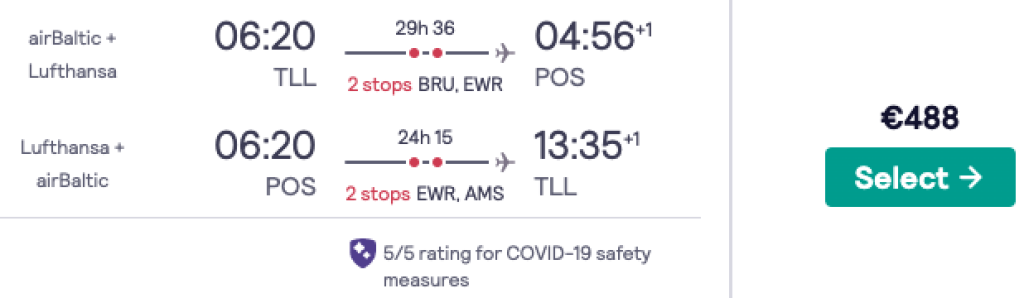 Lufthansa koostöös airbalticu ning Unitediga pakuvad hetkel väga hea hinnaga lennupileteid Tallinnast Trinidad ja Tobagole. Edasi-tagasi lennupiletid Tallinnast Port of Spaini leiab üles alates 488€ eest ning soodsa hinnaga lennupileteid leiab märtsi lõpust kuni juuli keskpaigani. Lennupiletite hinna sees on nii äraantav pagas kui toitlustamine. Lennupiletite ostmiseks kliki allpool olevatel näidiskuupäevadel või otsi endale sobivad lennupiletid üles läbi Skyscanneri