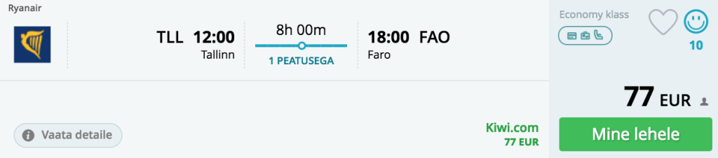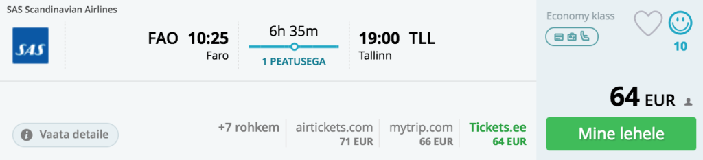 SAS pakub hetkel väga hea hinnaga lennupileteid Farosse. Kuna aga minnes pole olemas soodsa hinnaga kiireid ümberistumisi, siis leiab soodsaimad variandid kombineerides Ryanairi lende. Soodsaimad edasi-tagasi lennupiletid Tallinnast Farosse saab maikuus kätte alates 141€ eest. Mõlemal suunal on üks ümberistumine. Minnes toimub ümberistumine Londonis ning tagasiteel Stockholmis. Saadavus on vägagi piiratud ja tõime välja võimalikud soodsad variandid.