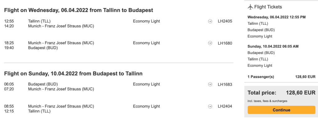 Lufthansa koostöös Swissiga pakuvad hetkel väga hea hinnaga lennupileteid Ungari pealinna Budapesti. Soodsaimad edasi-tagasi lennupiletid Tallinnast leiab üles 119€ eest ning soodsa hinnaga lennupiletite saadavust leiab alates augustist kuni 2022 aasta suveni välja. Eriti hea saadavus on alates novembrist kuni juunini. Lendudel on mõlemal suunal üks ümberistumine Frankfurdis. Meie soovitus on otsida huvipakkuvad lennupiletid üles läbi Lufthansa.com ning kui soovid veel mõnevõrra soodsama hinnaga lennupileteid, siis sisesta leitud kuupäevad Skyscannerisse