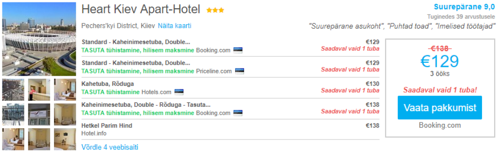 Hotellid KiievisKui otsid soodsa hinnaga öömaja Kiievis või mujal Ukrainas, siis soovitame parima ülevaate ja hinna saamiseks kasutada hotellihindade võrdlusportaali Hotelscombined.ee.