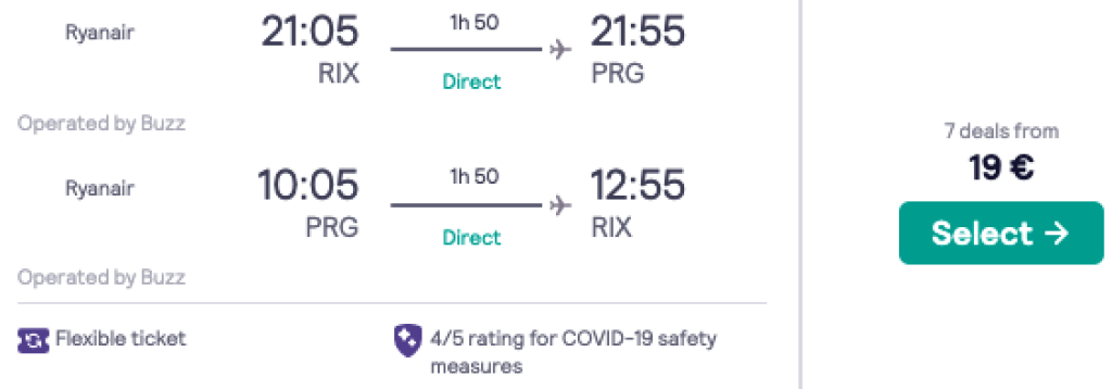 Odavlennufirma Ryanair pakub hetkel hea hinnaga lennupileteid suveks otselendudele Riiast Prahasse. Edasi-tagasi lennupiletid on saadaval alates 19€ eest ning hea hinnaga lennupileteid leiab juulis ja augustis. Soodsate lennupiletiteni jõudmiseks kliki allpool välja toodud lennukuupäevadel või kontrolli endale sobivaid läbi Skyscanneri.