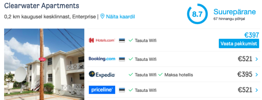 Näiteks võib leida stuudiokorteri kahele nädalaks ajaks väga heade reitingutega majutusasutuses Clearwater Apartments hinnaga 397€ ehk 199€/nädal. Lisainfo ja broneerimine