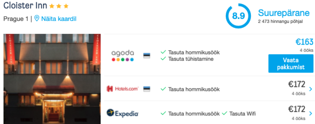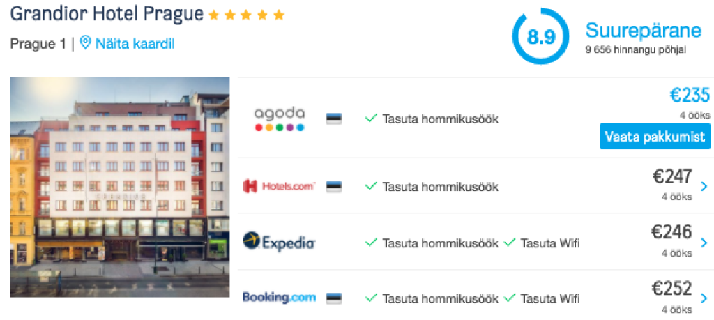 Hotellipakkumised PrahasKui otsid soodsa hinnaga öömaja, siis soovitame parima ülevaate ja hinna saamiseks kasutada hotellihindade võrdlusportaali HotelsCombined.ee