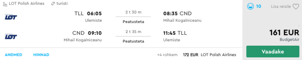 Nordica pakub hetkel suurepärase hinnaga lennupileteid suveks Tallinnast Musta mere äärsesse Constantasse. Edasi-tagasi lennupiletid on saadaval alates 161€ eest ning saadavust leiab juuni lõpust kuni septembri alguseni. Lennud toimuvad 1x nädalas, laupäeviti. Parima hinnaga lennupiletid leiad üles läbi Momondo.ee