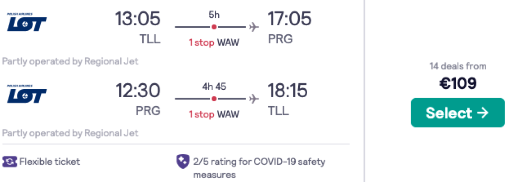LOT pakub hetkel väga hea hinnaga lennupileteid suveks Tšehhi. Edasi-tagasi lennupiletid Tallinnast Prahasse on saadaval alates 109€ eest ning soodsa hinnaga lennupileteid leiab juunis ja juulis. Lennud on mõlemal suunal ühe kiire ümberistumisega Varssavis. Toome allpool välja vaid väikse kuupäevavaliku, soodsa hinnaga lennupileteid leiab ka teisteks kuupäevadeks. Parima hinnaga lennupiletid leiad üles läbi Skyscanneri