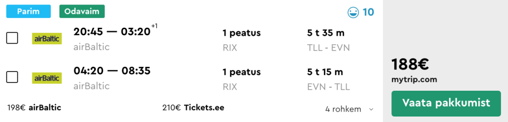 airBaltic pakub hetkel hea hinnaga lennupileteid Tallinnast Armeeniasse. Tegemist on nende uue sihtkohaga kuhu alustatakse lende alates maist. Edasi-tagasi lennupiletid Tallinnast Jerevani on saadaval alates 188€ eest ning saadavust leiab nii kevadeks kui suveks. Lendudel on mõlemal suunal üks kiire ümberistumine Riias. Parima hinnaga lennupiletid leiad üles läbi Momondo.ee