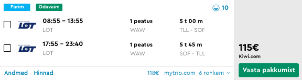LOT pakub hetkel suurepärase hinnaga lennupileteid Bulgaaria pealinna Sofiasse. Edasi-tagasi lennupiletid Tallinnast on saadaval alates 115€ eest ning saadavus on suurepärane kuni juuni alguseni välja. Tõime välja ohtralt kuupäevi veetmaks Sofias pikem nädalavahetus, saadavust leiab ka teisteks kuupäevadeks. Soodsate lennupiletiteni jõudmiseks kliki allolevatel lennukuupäevadel või kontrolli endale sobivaid läbi momondo.ee