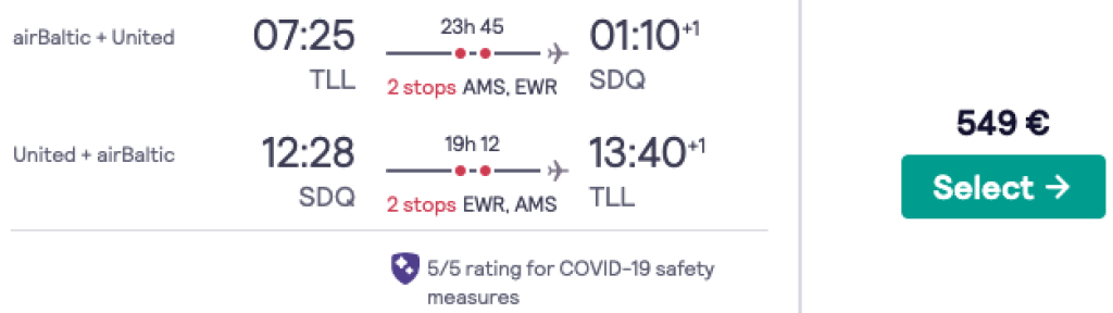 Star Alliance lennufirmad koostöös airBalticuga pakuvad hetkel hea hinnaga lennupileteid Dominikaani Vabariiki. Edasi-tagasi lennupiletid Tallinnast Santo Domingosse on saadaval alates 549€ eest ning lennud on mõlemal suunal kahe ümberistumisega. Lennupiletite hinna sees on ka äraantav pagas. Saadavust leiab alates novembrist kuni 2021 aasta augustini välja.