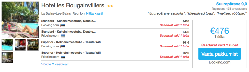 Leidub ka odavama hinnaga majutust. Otsi endale sobiv majutus Reunioni saarel läbi HotelsCombined.ee hinnavõrdlusportaali.