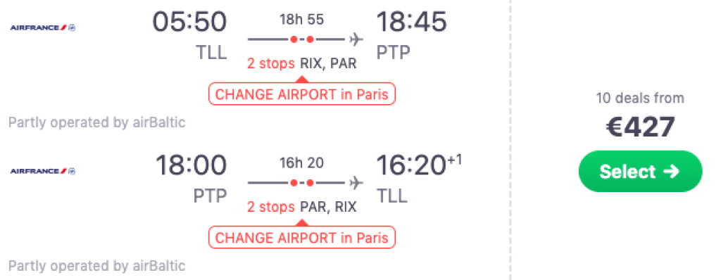 NB! Pariisis tuleb vahetada ka lennujaama (CDG -> Orly) ning see on Guadeloupe saarele lendajatele tasuta. Info lennujaama vahetuse kohta leiab SIIT
