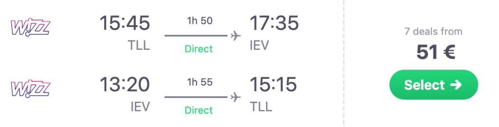 Wizzair pakub hetkel väga hea hinnaga lennupileteid Tallinnast Kiievisse. Soodsaimad edasi-tagasi lennupiletid otselendudele leiab üles vaid 51€ eest. Hea hinnaga lennupileteid leiab lendamiseks septembrist kuni detsembrini. Väga hea hinnaga lennupileteid leiab ka veetmaks pikk nädalavahetus Kiievis.