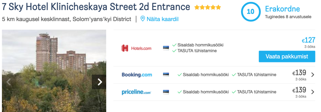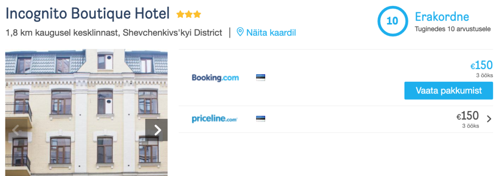 Muidugi leiab Kiievis ka tunduvalt soodsama hinnaga majutust, tõime välja vaid mõned hinnanäited veidi luksuslikemast võimalustest. Otsi endale sobiv hotellipakkumine üles läbi HotelsCombined.ee või allpool oleva otsingukasti: