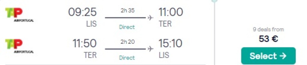 Lissabon-Ponta Delgada-Lissabon alates 59€