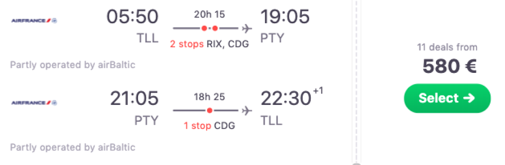 Air France koostöös airBalticuga pakuvad hetkel väga hea hinnaga lennupileteid Tallinnast Panamasse. Edasi-tagasi lennupiletid Tallinnast Panama Citysse on saadaval alates 580€ eest ning saadavust leiab augusti lõpust kuni 2020 aasta aprilli alguseni välja. Lendudel on olenevalt lennukuupäevadest 1-2 ümberistumist kas siis Helsingis, Riias ja Pariisis. Parima hinnaga lennupiletid leiad üles läbi Skyscanneri