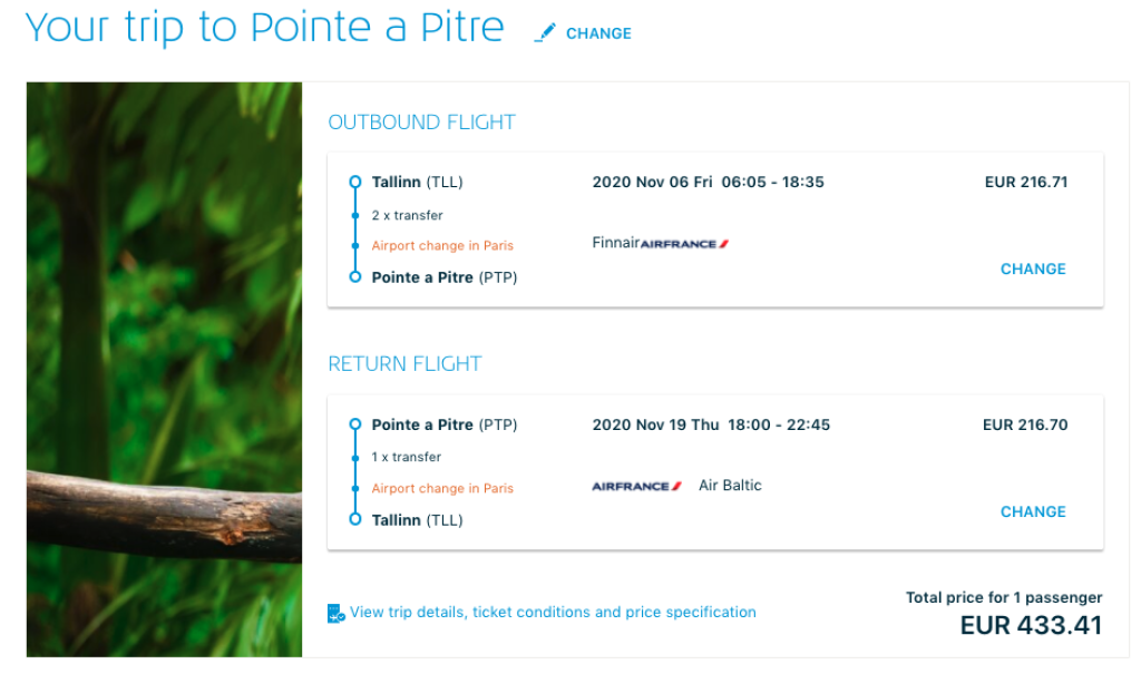 Air France/KLM koostöös airBalticu ja Finnairiga pakuvad hetkel erakordselt hea hinnaga lennupileteid Kariibidel asuvale Guadeloupe saarele. Edasi-tagasi lennupiletid Tallinnast Pointe-a-Pitresse on saadaval alates 402€ eest. Soodsate lennupiletite saadavus on väga hea ning neid leiab alates oktoobrist kuni 2021 juunini välja. Eriti hea saadavus (peaaegu et kõikidel päevadel) on alates novembrist kuni märtsini (välja arvatud jõulud-aastavahetus perioodiks).