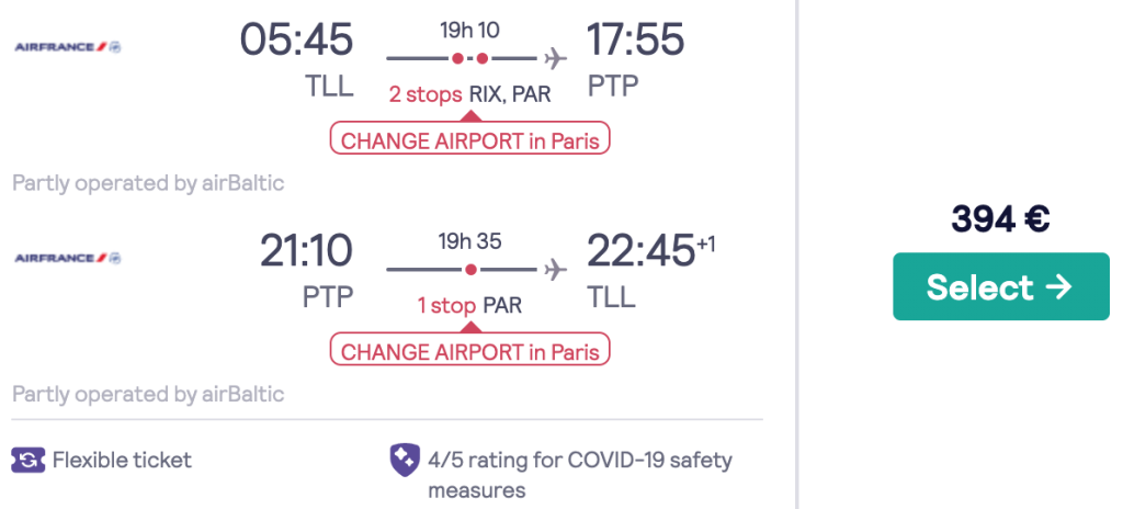 NB! Pariisis tuleb vahetada ka lennujaama (CDG -> Orly) ning see on Guadeloupe saarele lendajatele tasuta. Info lennujaama vahetuse kohta leiab SIITTäname kasutajat Mel, kes teavitas et hetkel Le bus Direct ei sõida seoses koroonaviiruse levikuga ning lennujaamavahetus tuleb organiseerida ise.
