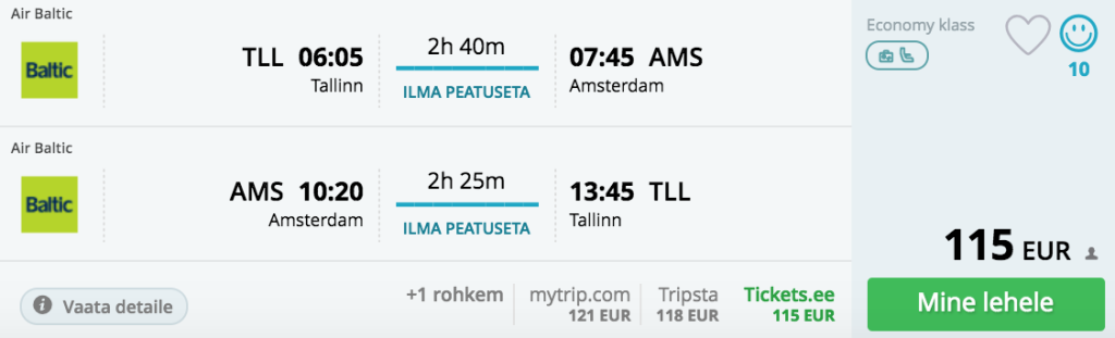 Tallinn- Amsterdam- Tallinn alates 115€Endale sobivad lennupiletid Tallinnast Amsterdami leiad otsides läbi Momondo.ee