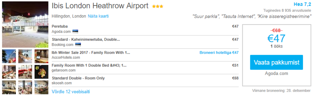 Kui otsid soodsa hinnaga öömaja, siis soovitame parima ülevaate ja hinna saamiseks kasutada hotellihindade võrdlusportaali Hotelscombined.ee.
