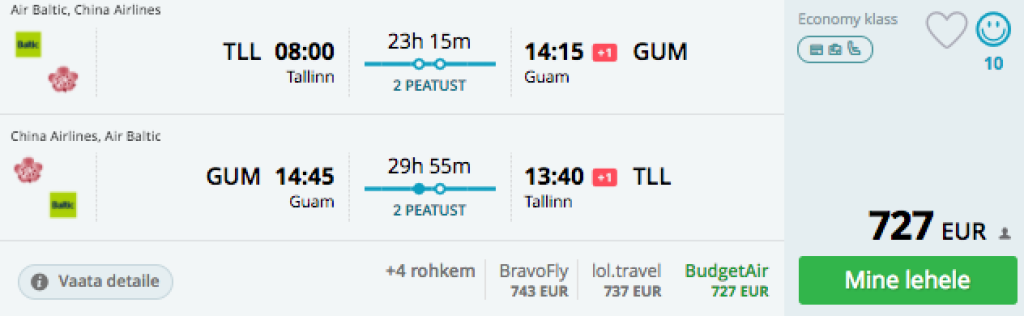 Taiwani lennufirma China Airlines pakub hetkel koostöös airBalticuga vägagi atraktiivsete hindadega lennupileteid Mikroneesiasse. Edasi-tagasi lennupiletid Guami ning Palausse on Tallinnast ja Riiast saadaval alates 681€ eest. Soodsaimad lennupiletid leiab Riiast Guami. Saadavust leiab alates aprilli keskpaigast kuni juuni lõpuni. Lennud Tallinnast on ümberistumisega Viinis ning Taipeis, Riiast võivad ümberistumised toimuda ka Amsterdamis või Londonis. Kindlasti võiks see pakkumine huvi pakkuda sukeldumishuvilistele.
