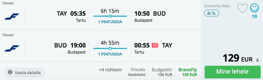 Finnair pakub hetkel vägagi hea hinnaga lennupileteid Tallinnast ja Tartust Ungari pealinna Budapesti. Soodsaimad edasi-tagasi lennupiletid on saadaval vaid 129€ eest. Hea hinnaga lennupileteid leiab ka suveks! Parima hinnaga lennupiletid leiad üles läbi Momondo.ee