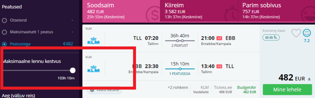 KLM pakub hetkel väga hea hinnaga lennupileteid Tallinnast Ugandasse! Edasi-tagasi lennupiletid on saadaval alates 482€ eest. Soodsa hinnaga lennupileteid leidub märtsist juunini.
