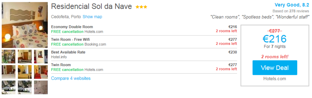 Hotellid PortosKui otsid öömaja Portos, siis tasub kindlasti hotellihindade võrdlemiseks kasutada HotelsCombined.ee hotellide otsingumootorit.