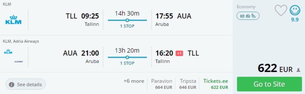 Tallinn-Aruba-Tallinn al. 622€