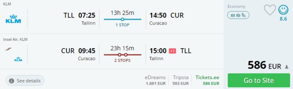 Tallinn – Curacao – Tallinn al 586€