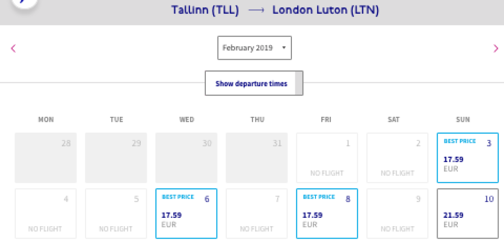 Tallinn-London 17.59€Sellise hinnaga lennupiletite saadavust leiab vahemikus jaanuarist aprillini.