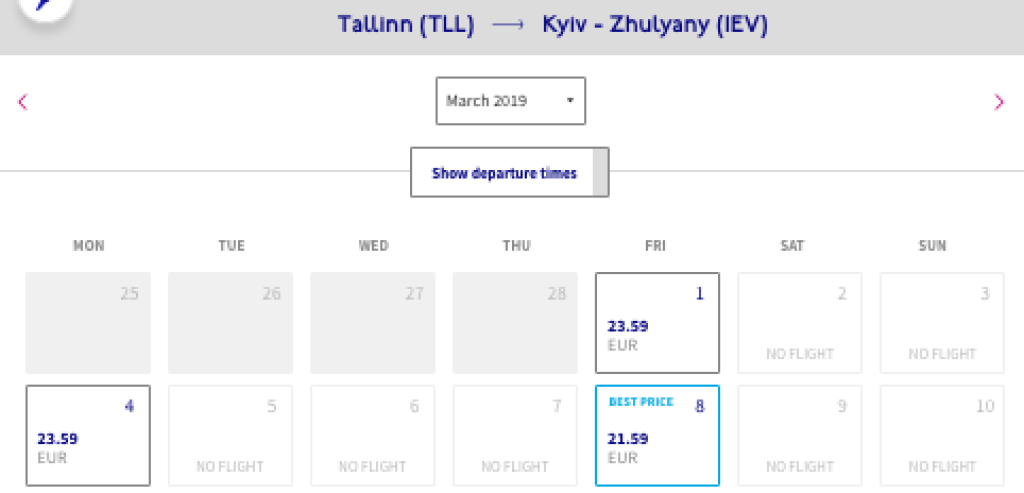 Wizzairi sihtkohad Tallinnast:Kiiev, London (Luton)