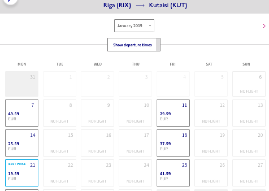 Riia-Kutaisi alates 19.59€