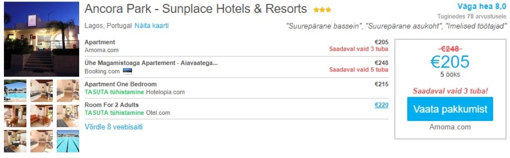 Hotellisoovitus:Majutusasutusi Faros ja Algarves leidub palju ning parima hinnaga hotellipakkumised leiab üles läbi hotellihindade võrdlusportaali HotelsCombined.ee.