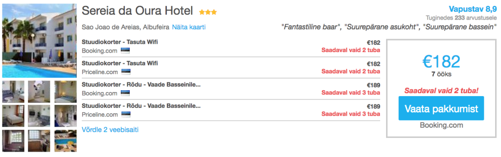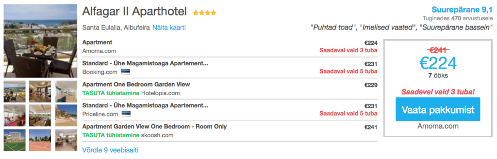 Nende hotellipakkumiste leidmiseks mine HotelsCombined.ee ning sisesta hotelli nimi ning sobivad kuupäevad.