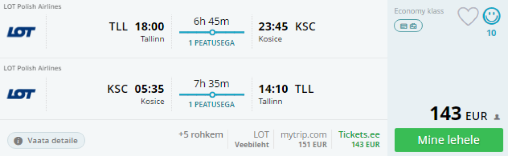 Tallinn – Košice – Tallinn 143€