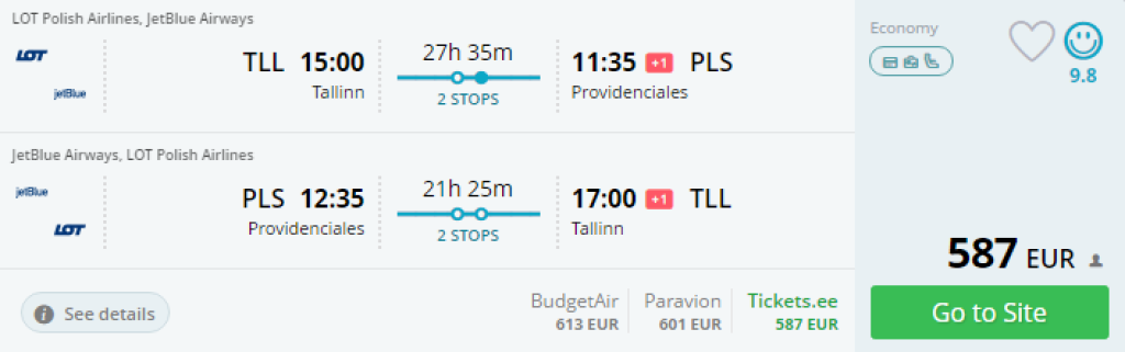 Tallinn- Providenciales- Tallinn al. 587€