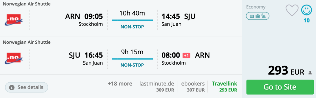 Stockholm-San Juan-Stockholm al. 293€