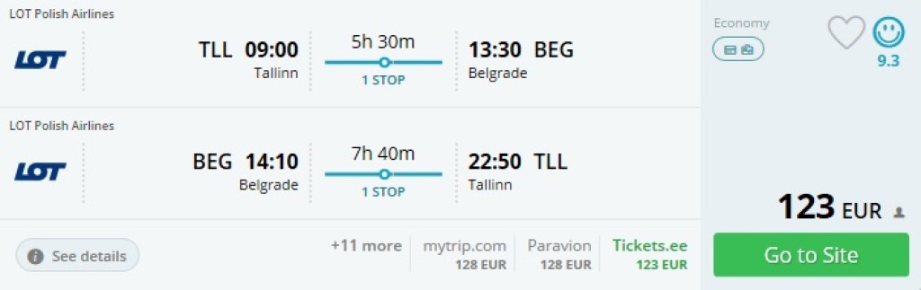LOT pakub alates augustist edasi-tagasi lennupileteid Serbia pealinna Belgradi hinnaga 123€. Lennud on ühe ümberistumsiega Varssavis. Sellise hinnaga pileteid leiab ka septembris, oktoobris ja edasigi.