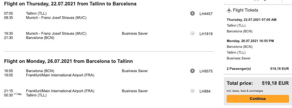 Tallinn-Barcelona-Tallinn 519€ ehk 260€/per person