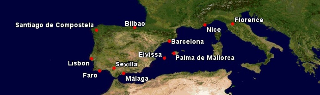 Käesoleval nädalal on Lufthansa üllatanud väga soodsate lennupiletitega kevadeks ja suveks paljudesse sihtkohtadesse Lõuna Euroopas. Valikus on olnud erinevad linnad Hispaanias, Portugalis, Lõuna- Prantsusmaal ning Itaalias. Ülaltoodud kaardil oleme välja toonud enamiku nädala jooksul Trip.ee's avaldatud Lufthansa sooduspakkumiste sihtkohad. Vaatasime kõik sihtkohad üle ning soodsaid lennupileteid on endiselt veel võimalik leida. Allpool oleme välja toonud hinnanäite kõikidesse linnadesse ning otselingi pakkumise juurde.